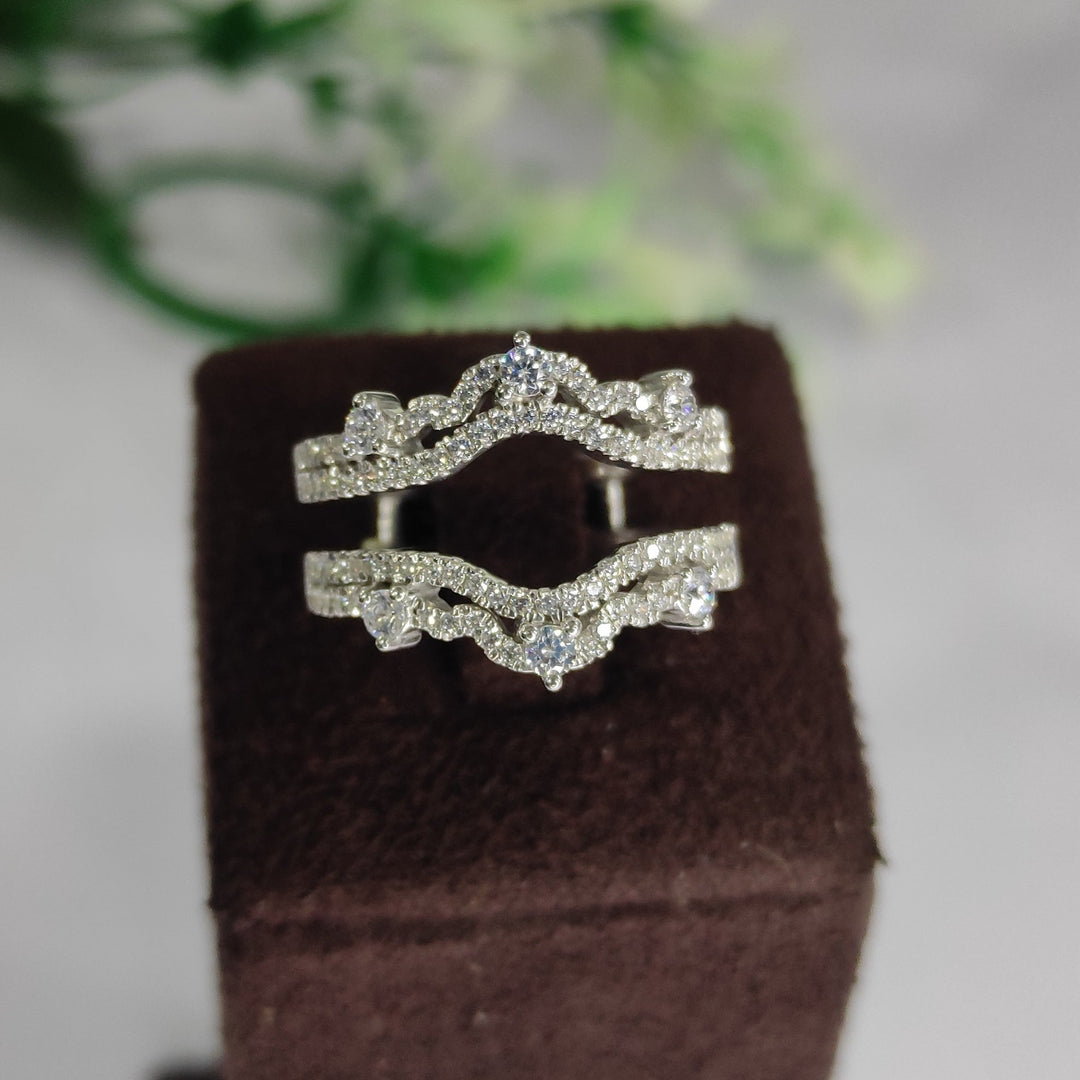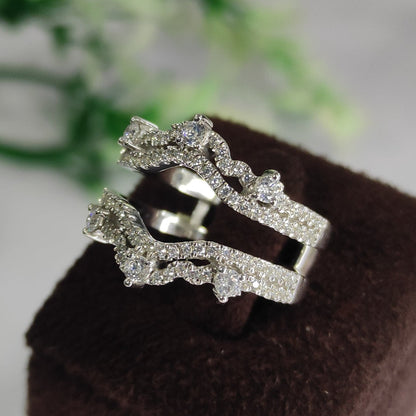 White Diamond Ring Enhancer- Wedding Ring Enhancer 14K White Gold Vermeil 925 Sterling Wedding Band Guard- Engagement Ring Jacket- Bridal Ring Enhancer Wrap