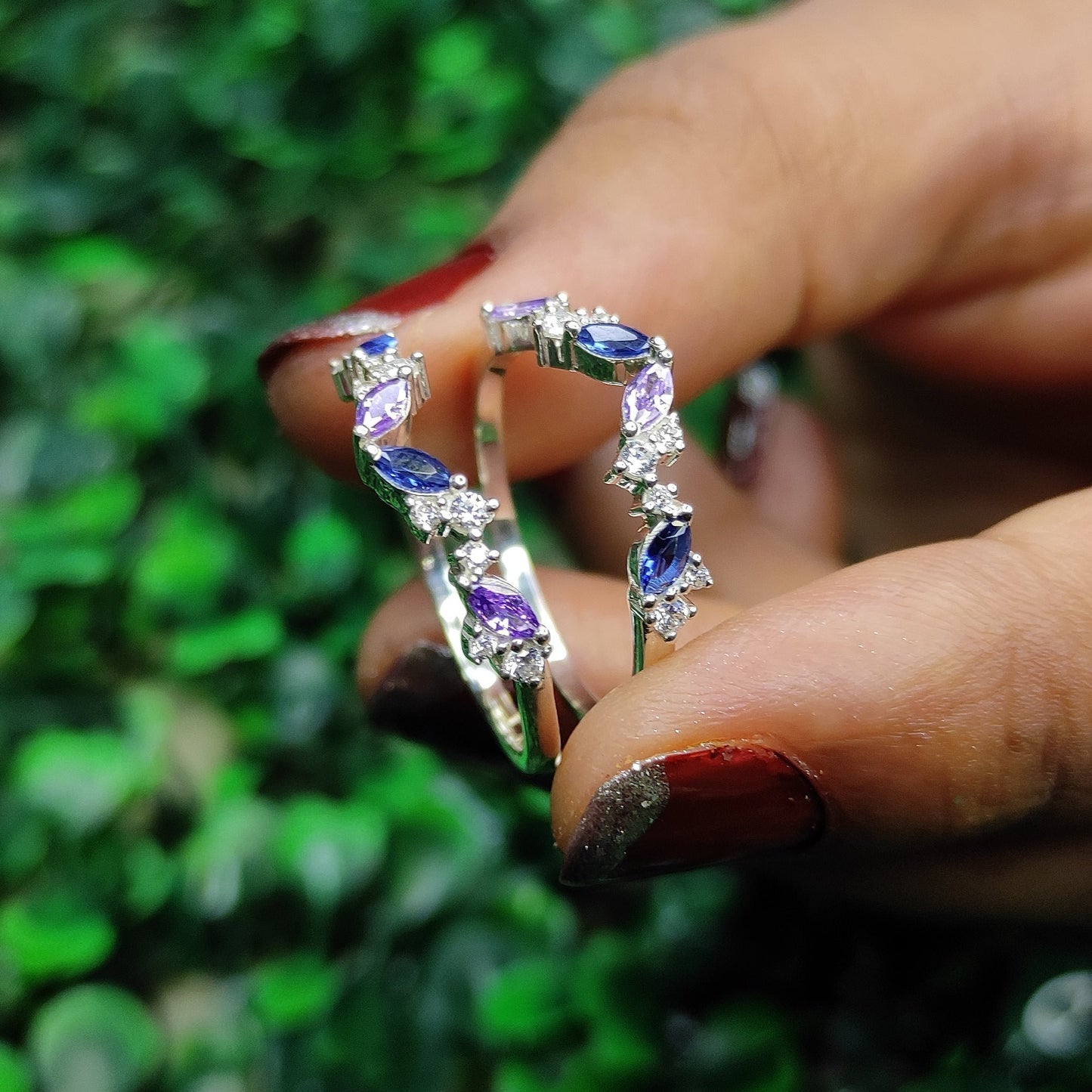 Art Deco Sapphire and Amethyst Ring Enhancer 925 Sterling Silver Wedding Band Guard Engagement Ring Enhance Wrap Promise Ring Anniversary Gift for Her