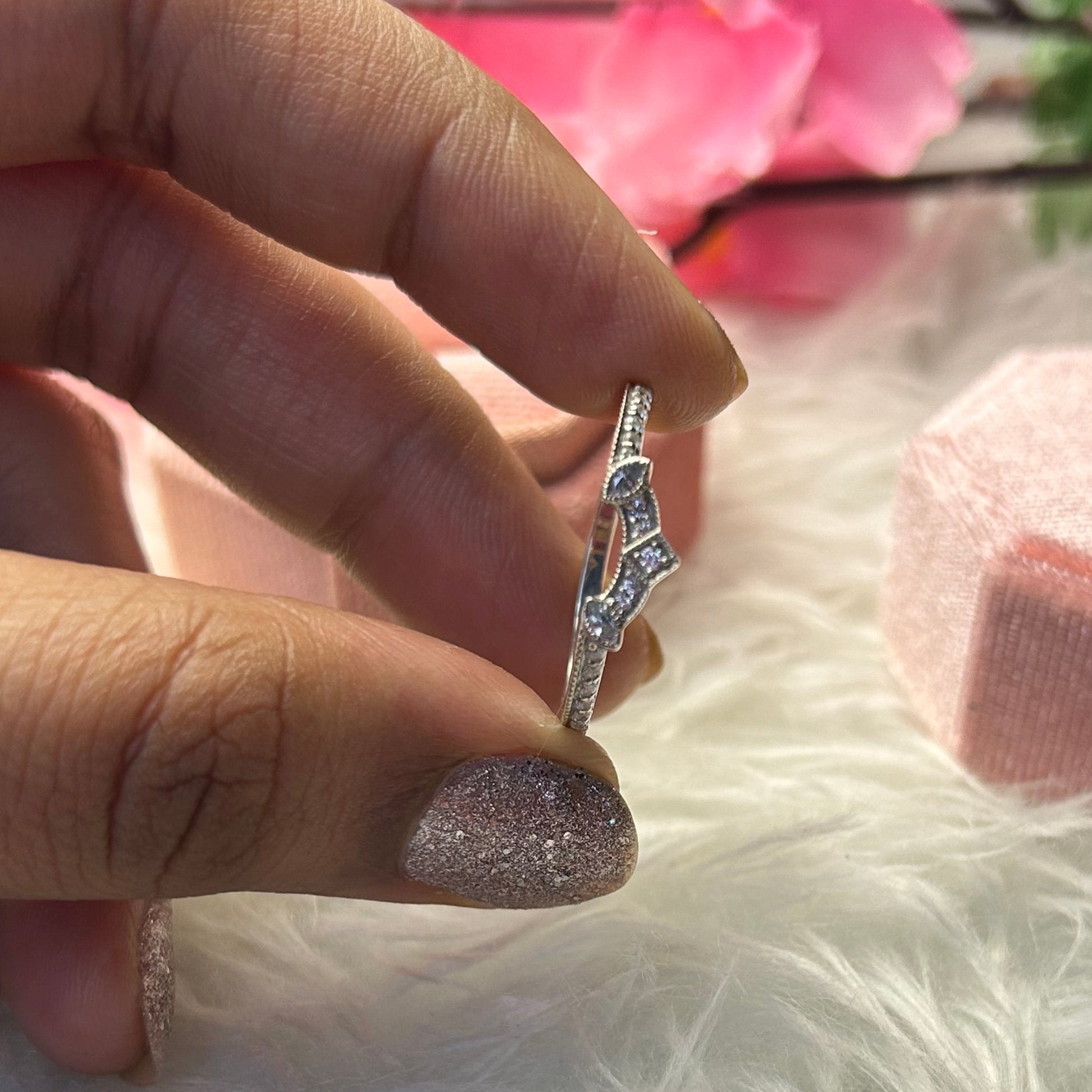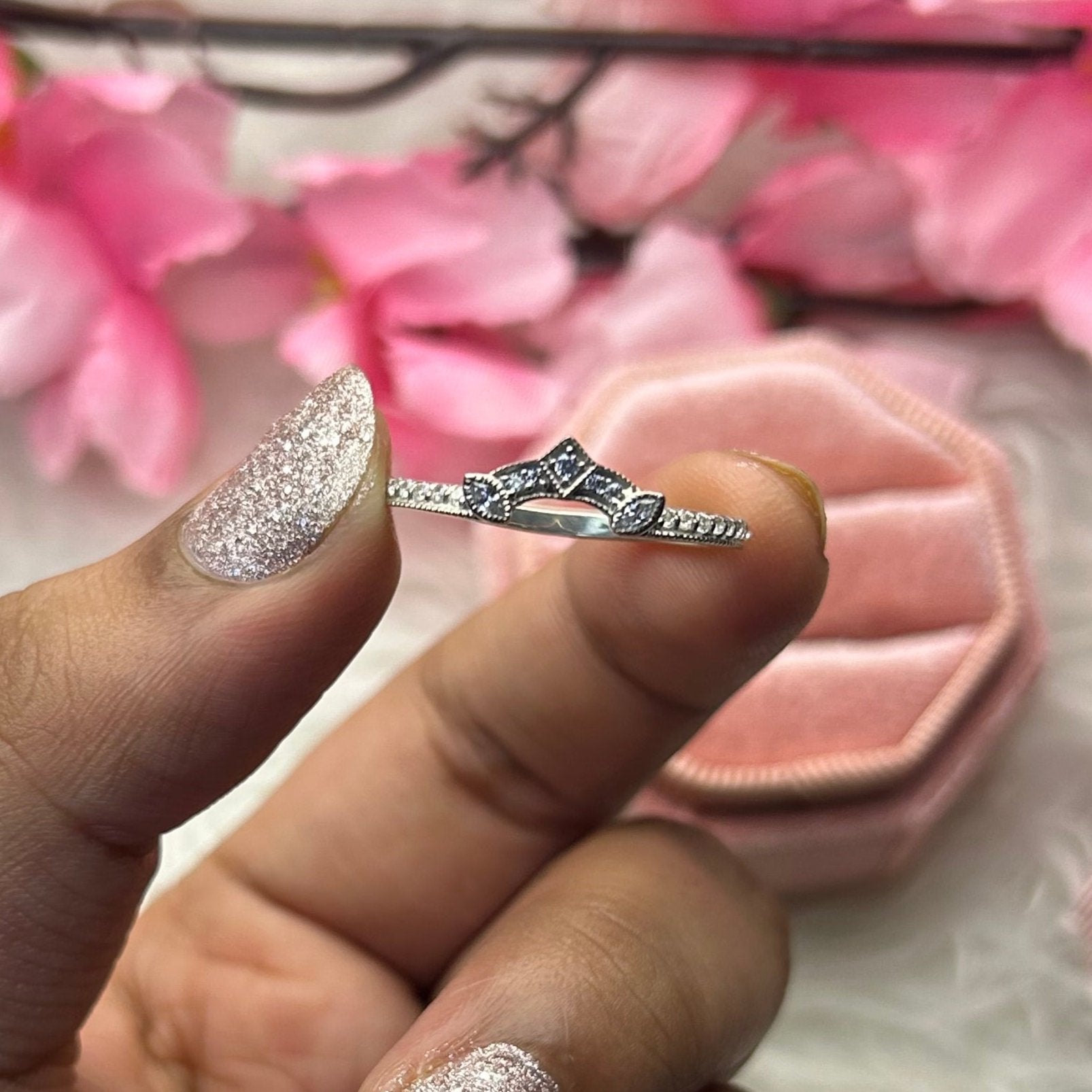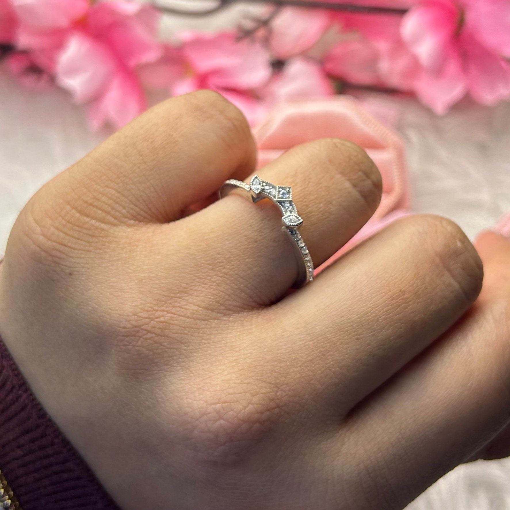 Art Deco Stackable Wedding Band 925 Sterling Silver Matching Promise Ring Gift For Her