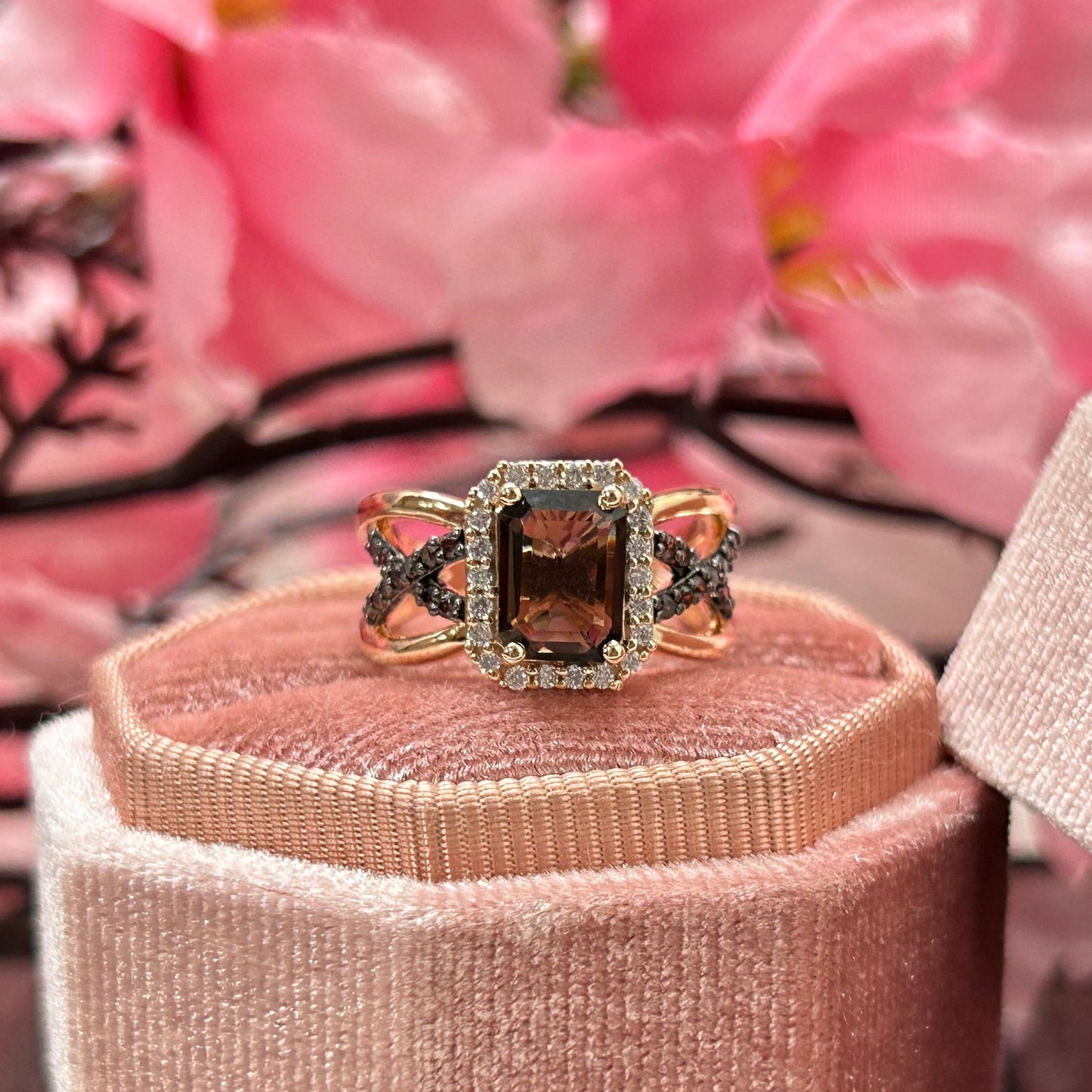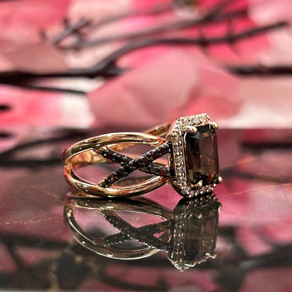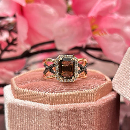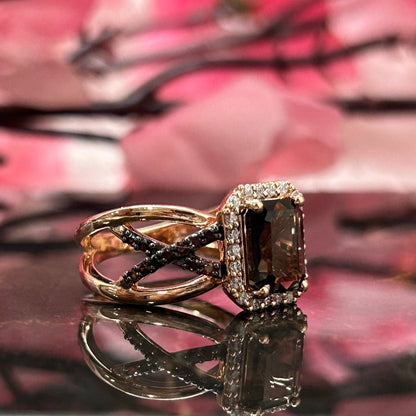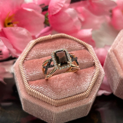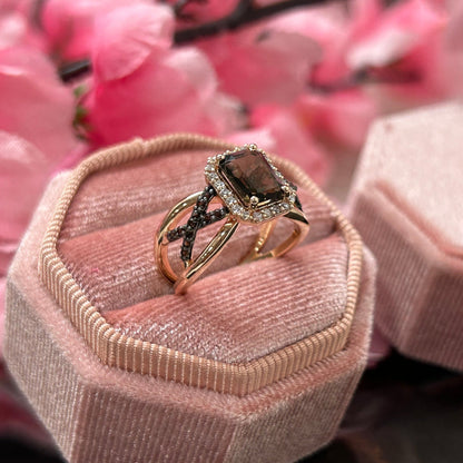 Natural Radiant Cut Smoky Brown Diamond Ring- Brown Diamonds Promise Ring For Her 14K Rose Gold Vermeil 925 Sterling Silver Smoky Quartz Wedding Engagement Ring Gift For Her