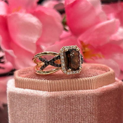 EARTHY Natural Radiant Cut Smoky Brown Diamond Ring- Brown Diamonds Promise Ring For Her
