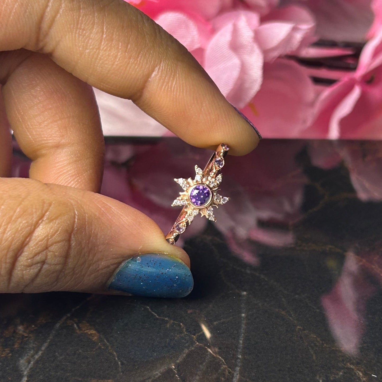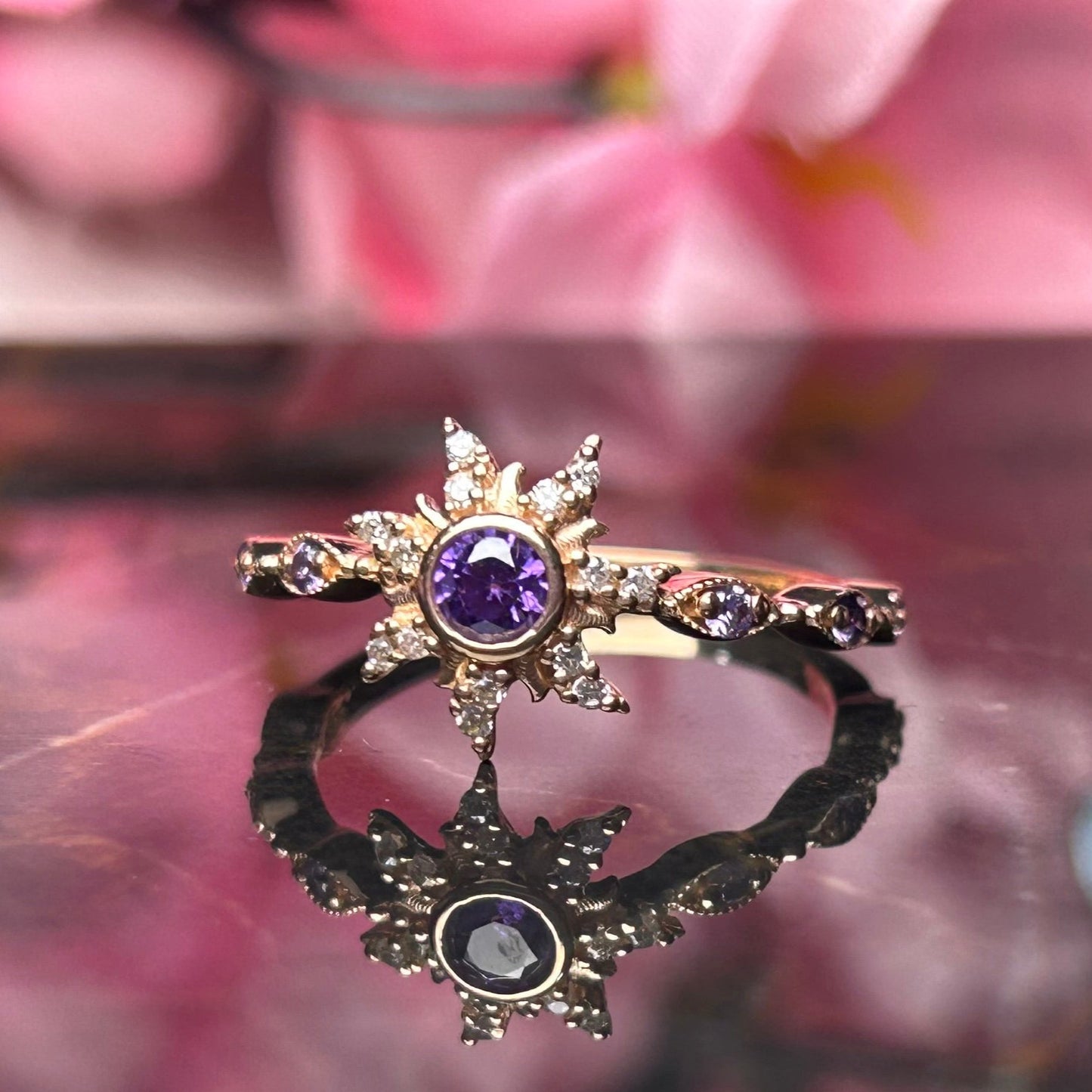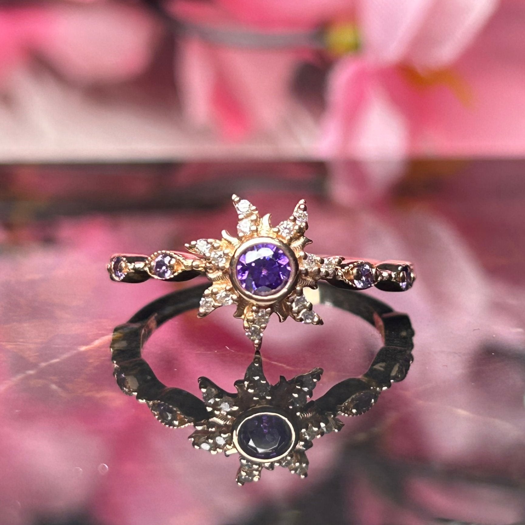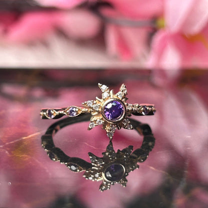 Rapunzel Inspired Purple Amethyst Wedding Ring- Magic Sunflower Ring- Romantic Engagement Ring- 14K Rose Gold Vermeil 925 Sterling Silver- Promise Ring- Gift For Her