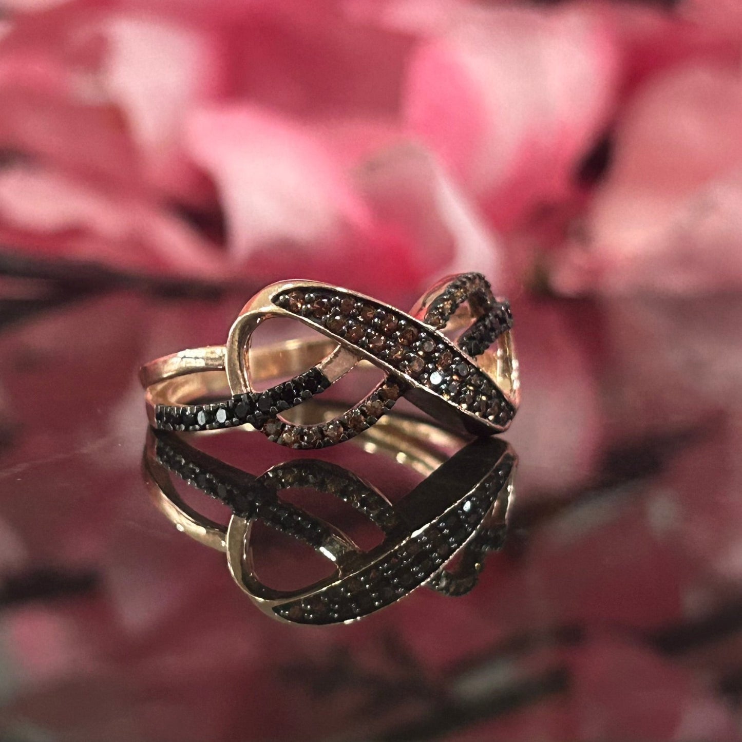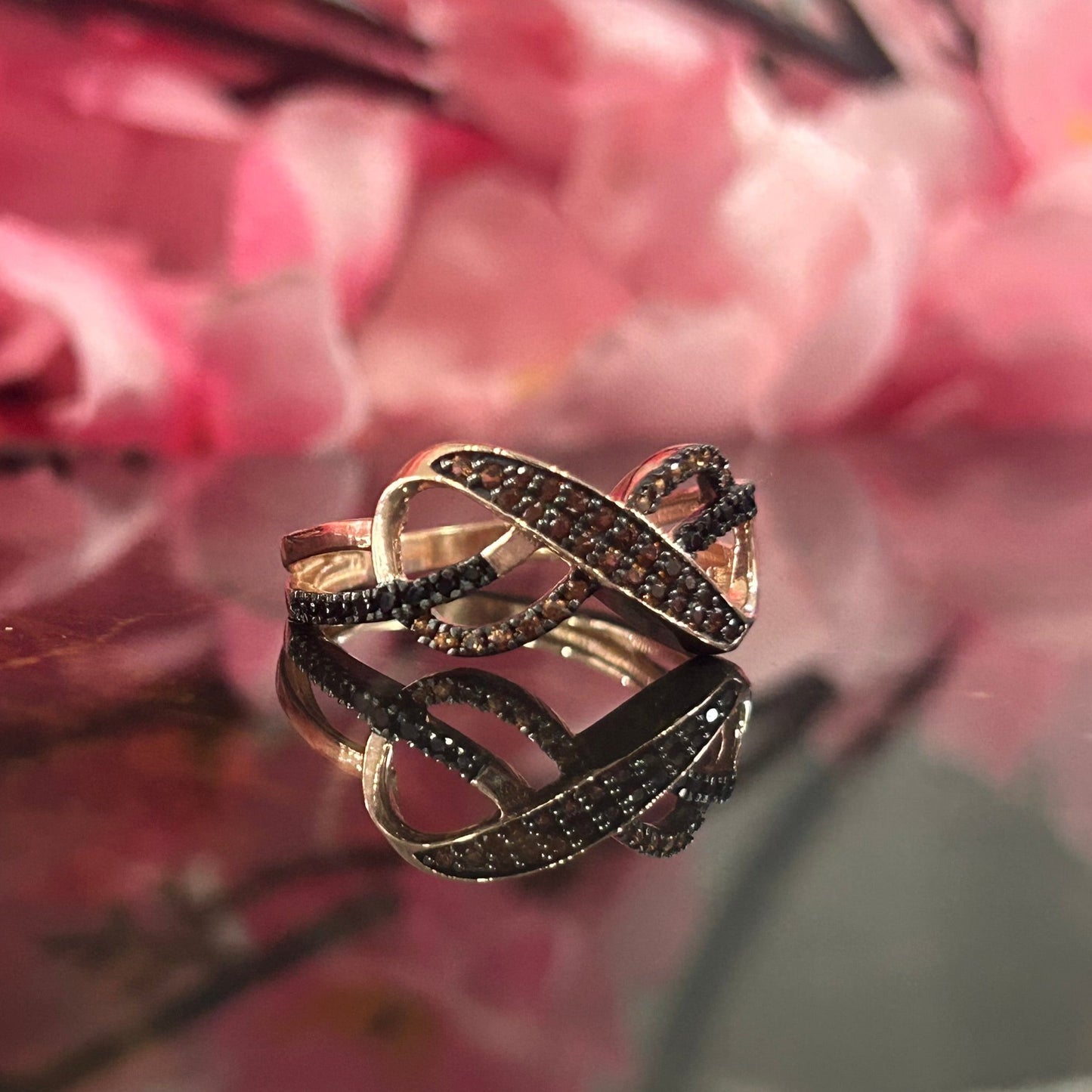 EARTHY Round Cut Natural Brown Diamond Infinity Ring- Love Knot Romantic Wedding Engagement Ring
