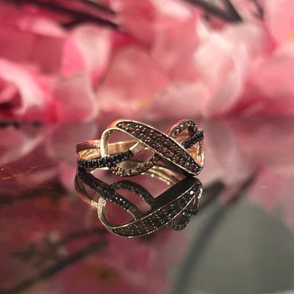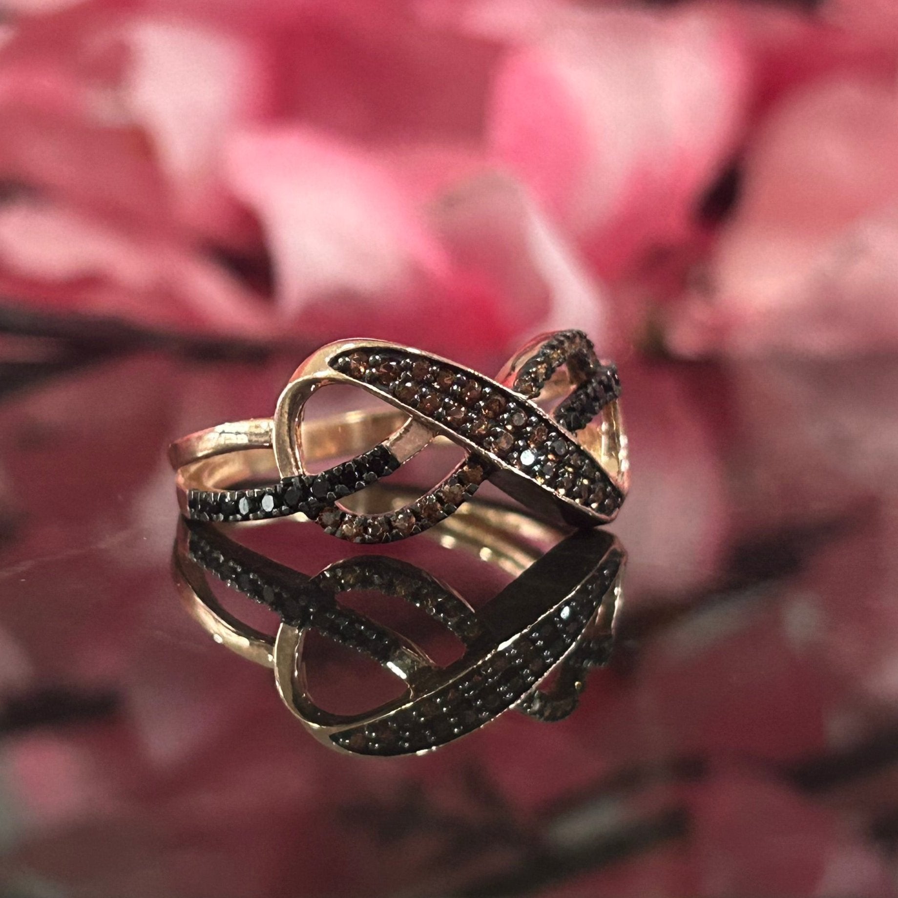 Natural Brown Diamond Ring- Dainty Love Knot Engagement Ring 925 Sterling Silver 14K Rose Gold Finish Womens Wedding Band ring- Promise Ring Gift For Her