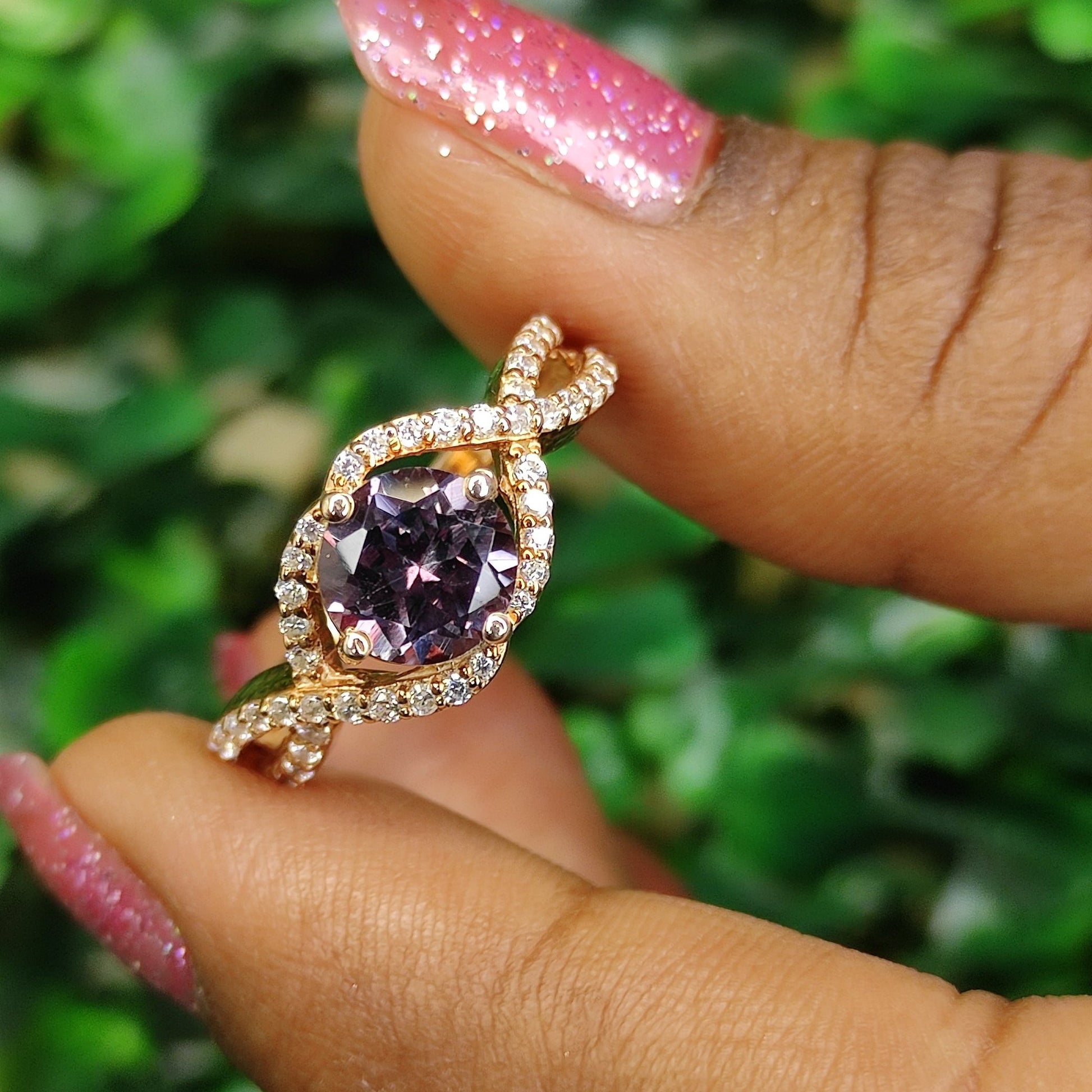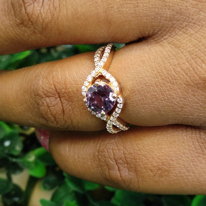 Round Cut Natural Alexandrite Ring- Engagement Ring- 925 Sterling Silver 14K Rose Gold Vermeil Alexandrite Wedding Ring- Dainty Stackable Ring- Bridal Promise Ring- Gift For Womens