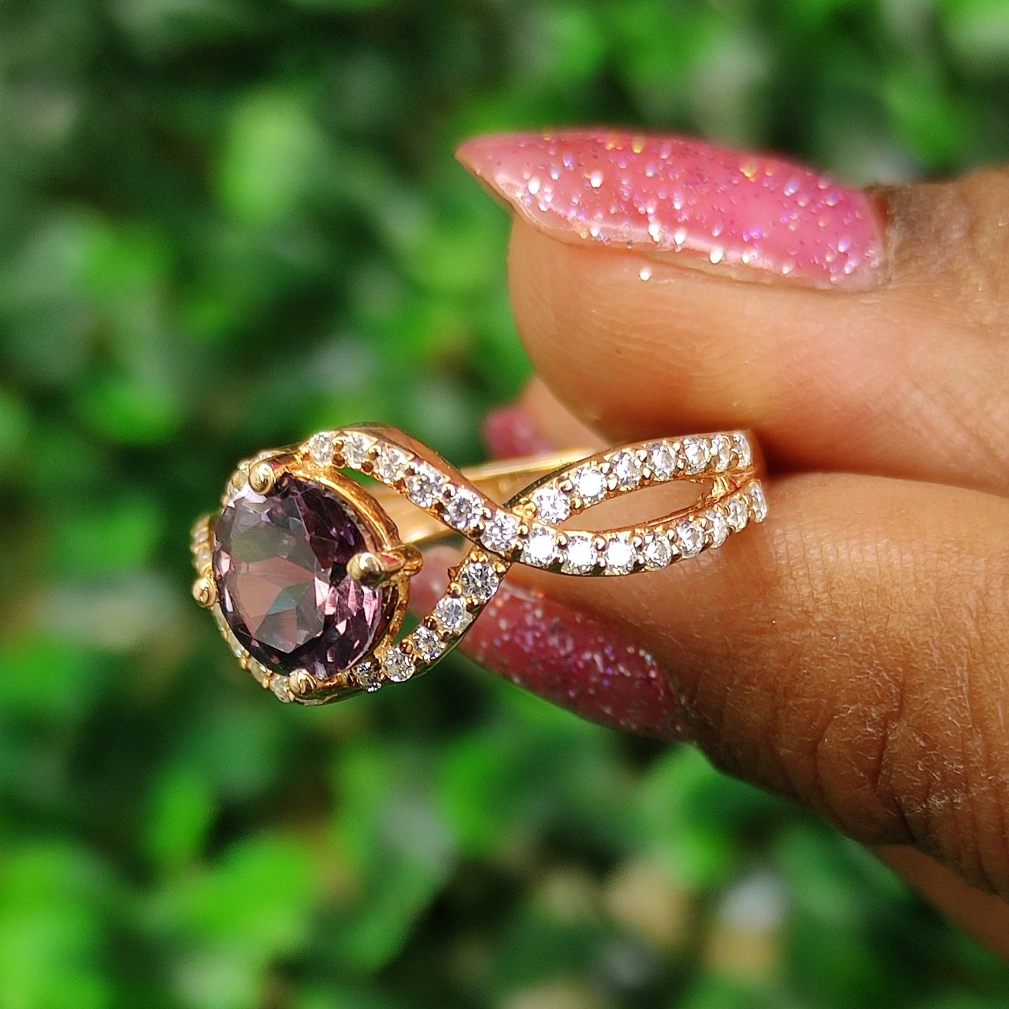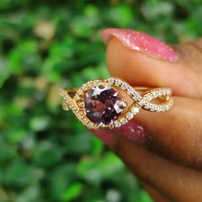 AURORA Round Cut Natural Alexandrite Wedding Ring- Infinity White Diamond Band in 925 Sterling Silver